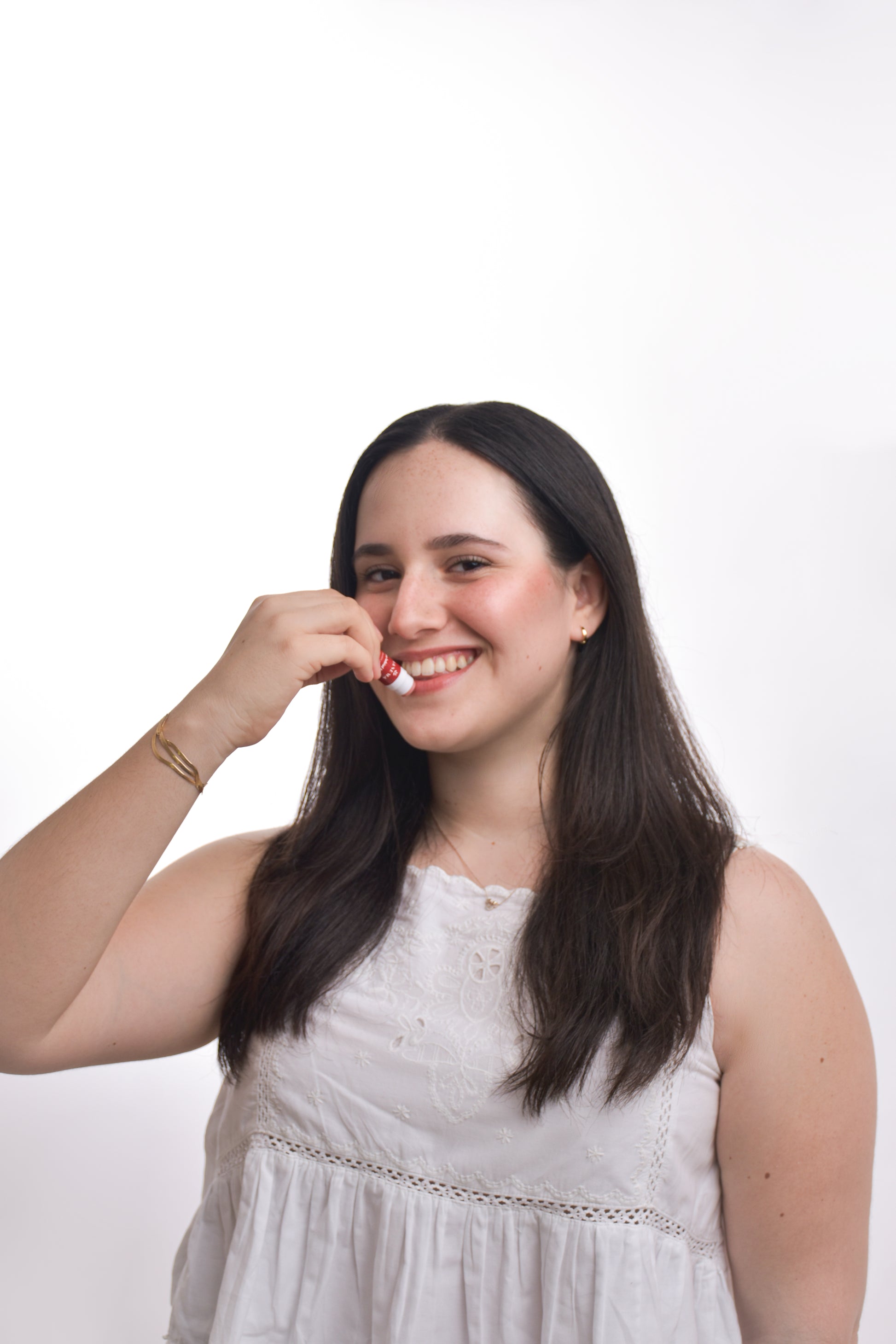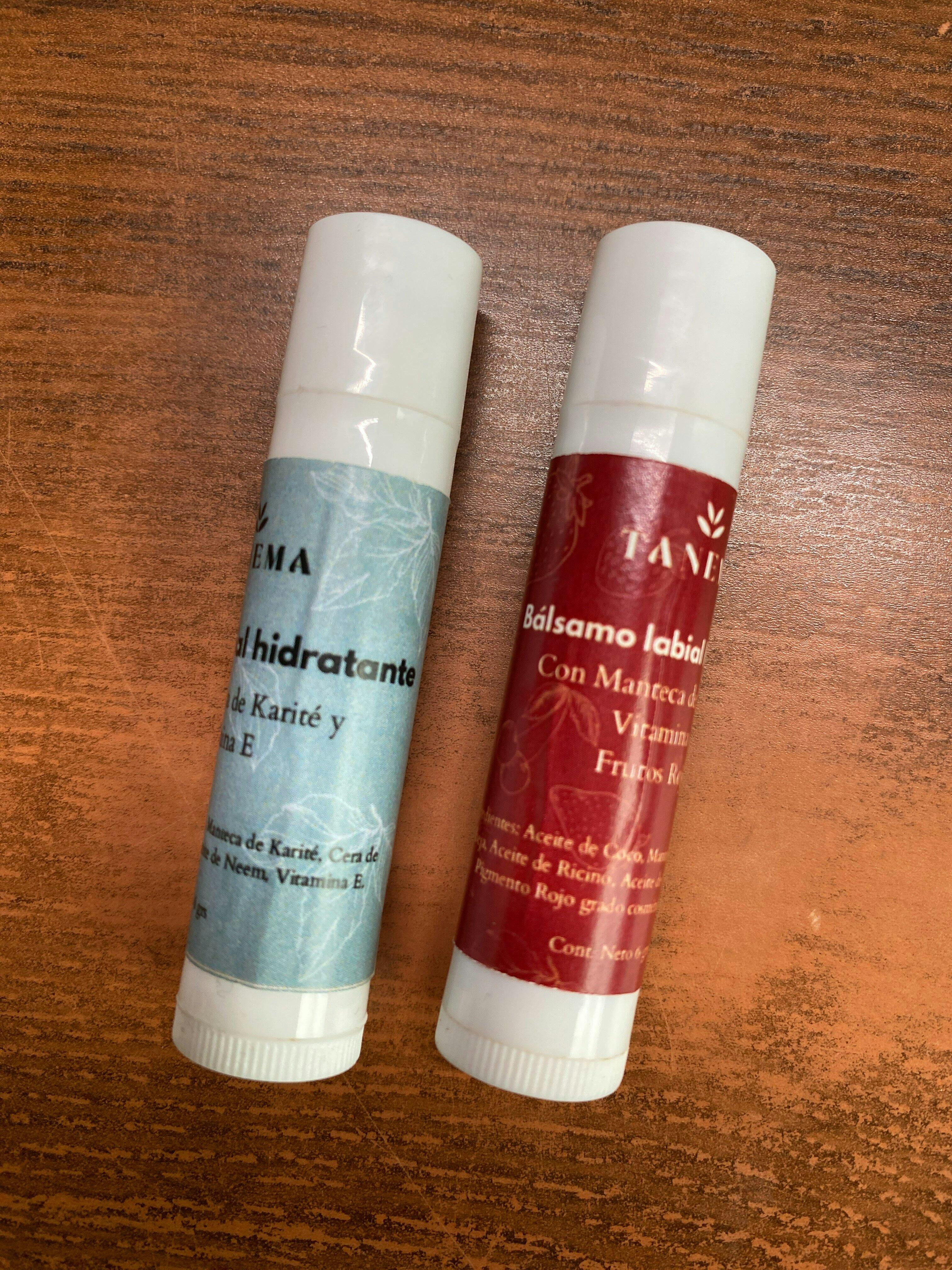 Bálsamo Labial Hidratante con ligero pigmento rojo y aroma frutos rojos.